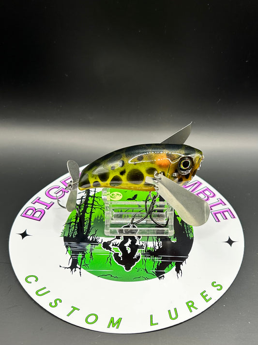 Custom Crawler Baits built to create chaos on the surface. With metal wings that clack and crawl across the water, these topwater lures produce a steady gurgling action bass can’t resist. Each bait is hand-painted with bold finishes that stand out in low light, making them deadly at night or during early morning feeding windows. Perfect for fishing calm water, along weed edges, or over submerged cover, crawler baits trigger explosive strikes from big bass hunting the surface.